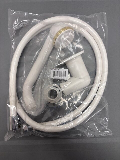 Bestaande uit: Douchekop, slang (150 cm), wandhouder en adapter met 3/8” aansluiting.