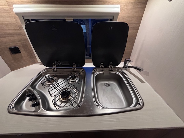 3-pits kookstel, spoelbak, THETFORD KOELKAST met VRIESVAK
