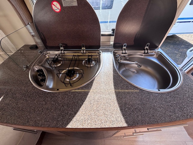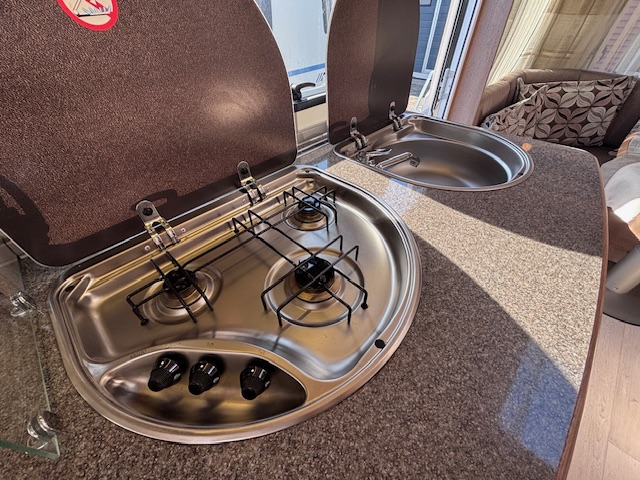 KEUKEN met 3-pits kookstel en DOMETIC KOELKAST en VRIESVAK