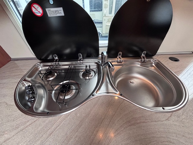 KEUKEN met 3-pits kookstel, THETFORD KOELKAST en VRIESVAK