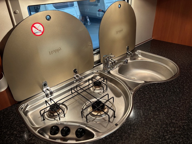 KEUKEN met 3-pits kookstel en GROTE TETFORD KOELKAST